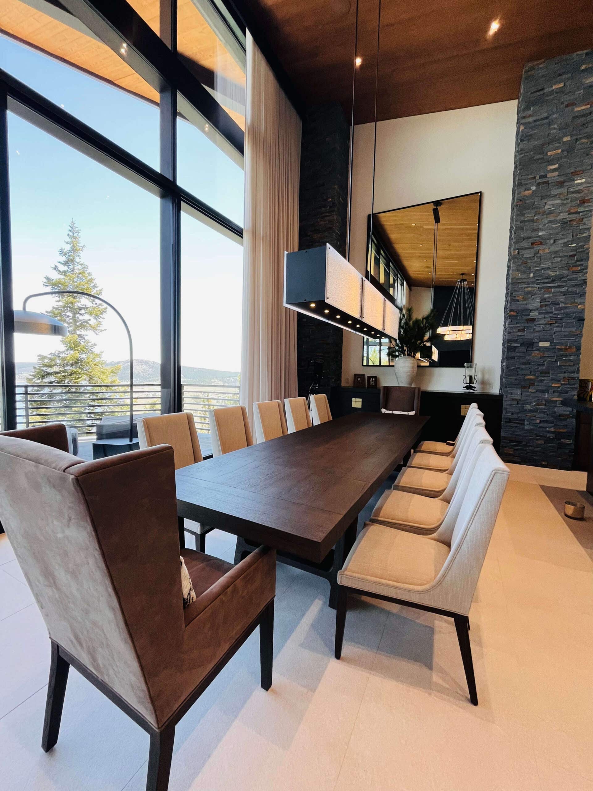 We layered rich textures and modern finishes to balance the structural boldness with comfort and livability. Every detail was thoughtfully curated to complement the natural surroundings while offering a refined, elevated mountain experience. This marks the third home weโve had the privilege of designing for these long-standing clients. This ongoing collaboration is built on trust, shared vision, and timeless design.
